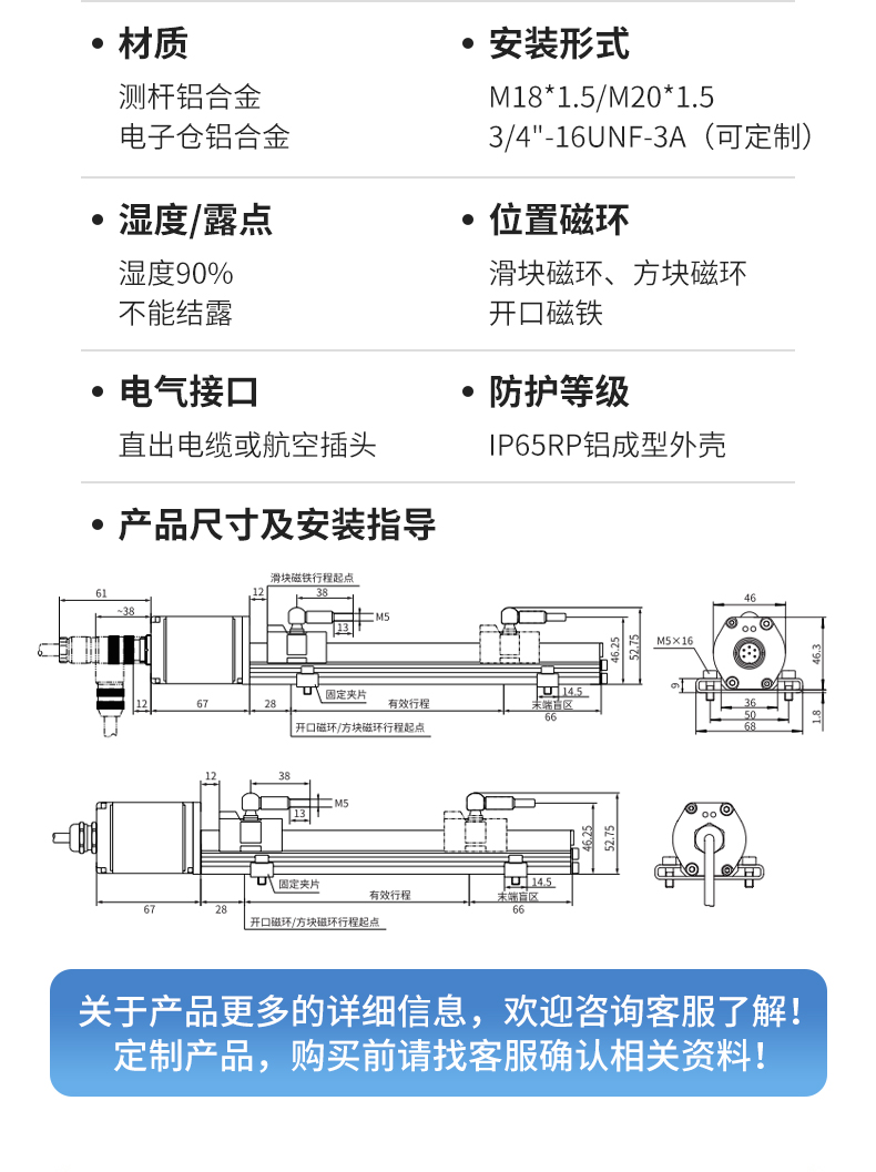 關于DHL防水型位移傳感器安裝使用
